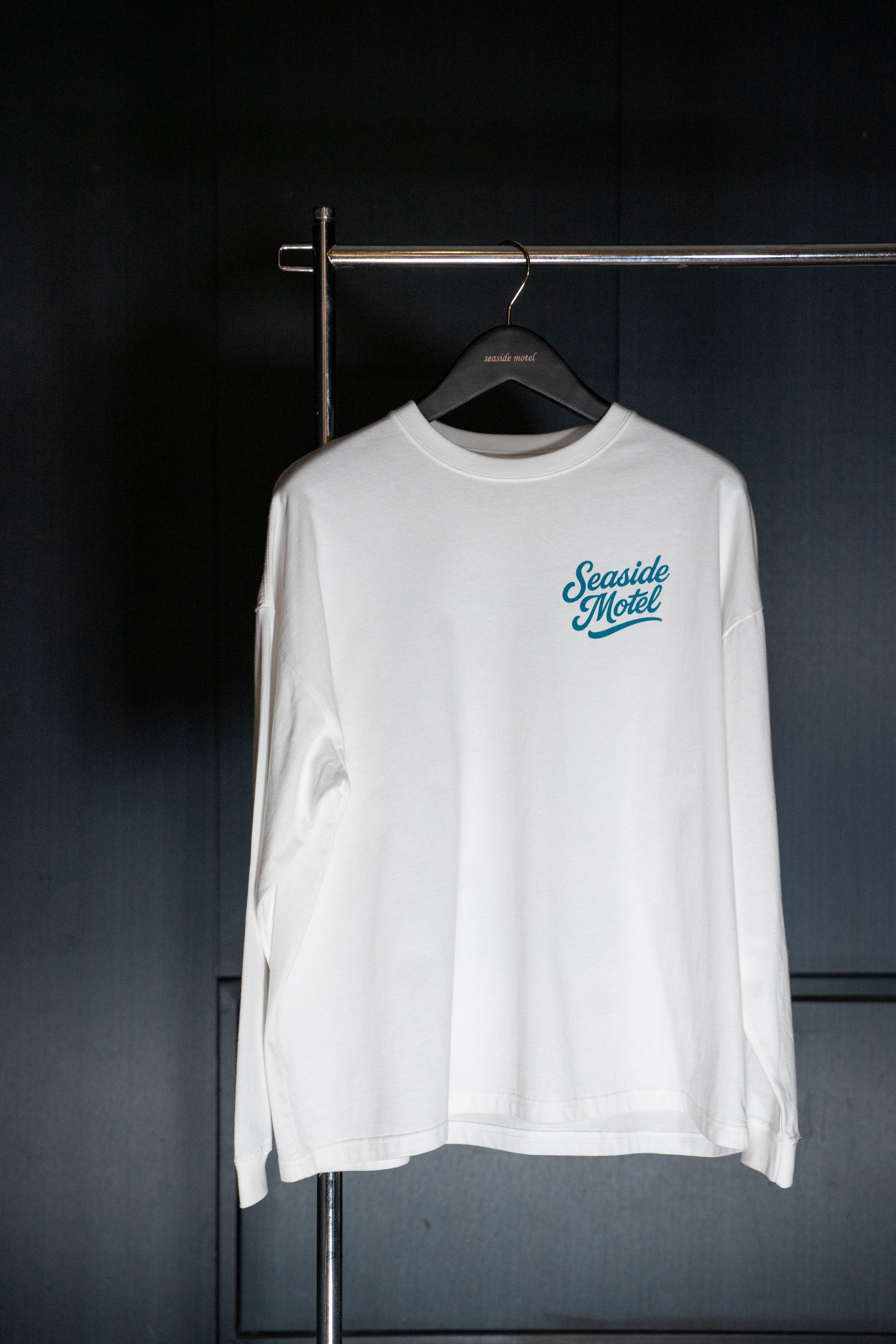 5.6オンスの生地に SEASIDE MOTELのPhase3のテキストロゴ を左胸に フレンチブルドッグ を背中にプリントしたロンTになります。
